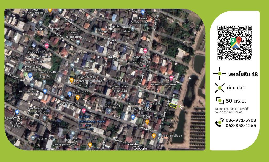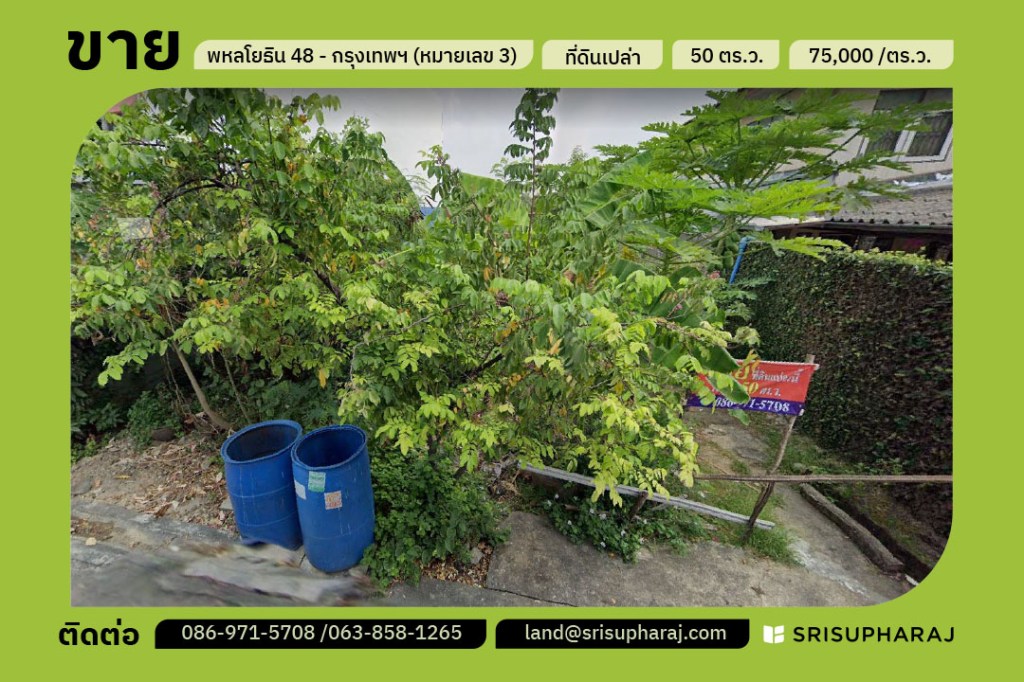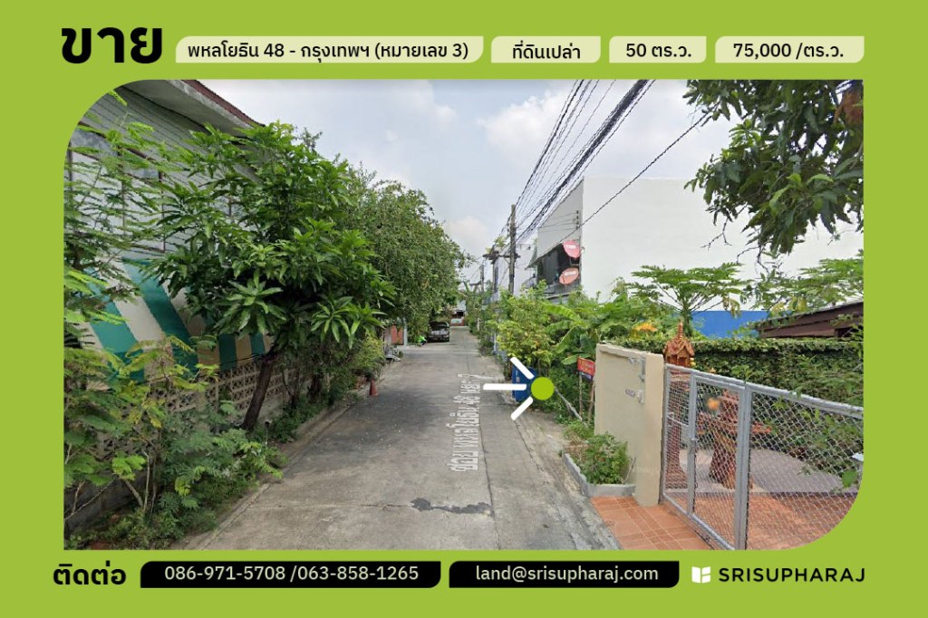 ขายที่ดินแปลงสวย ซอยสายหยุด พหลโยธิน48 แปลงหมายเลข 3 ขนาด 50 ตร.ว.