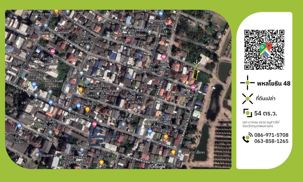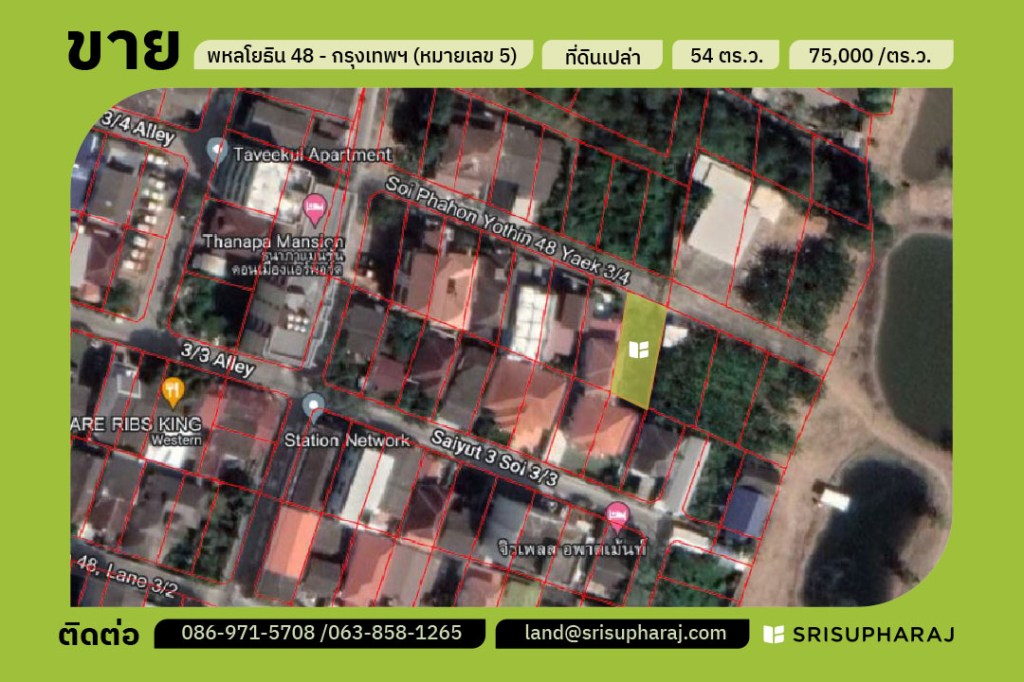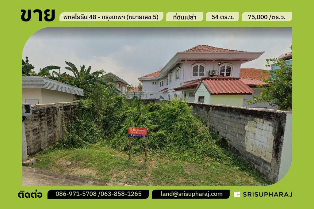 ขายที่ดินแปลงสวย ซอยสายหยุด พหลโยธิน48 แปลงหมายเลข 5 ขนาด 54 ตร.ว.